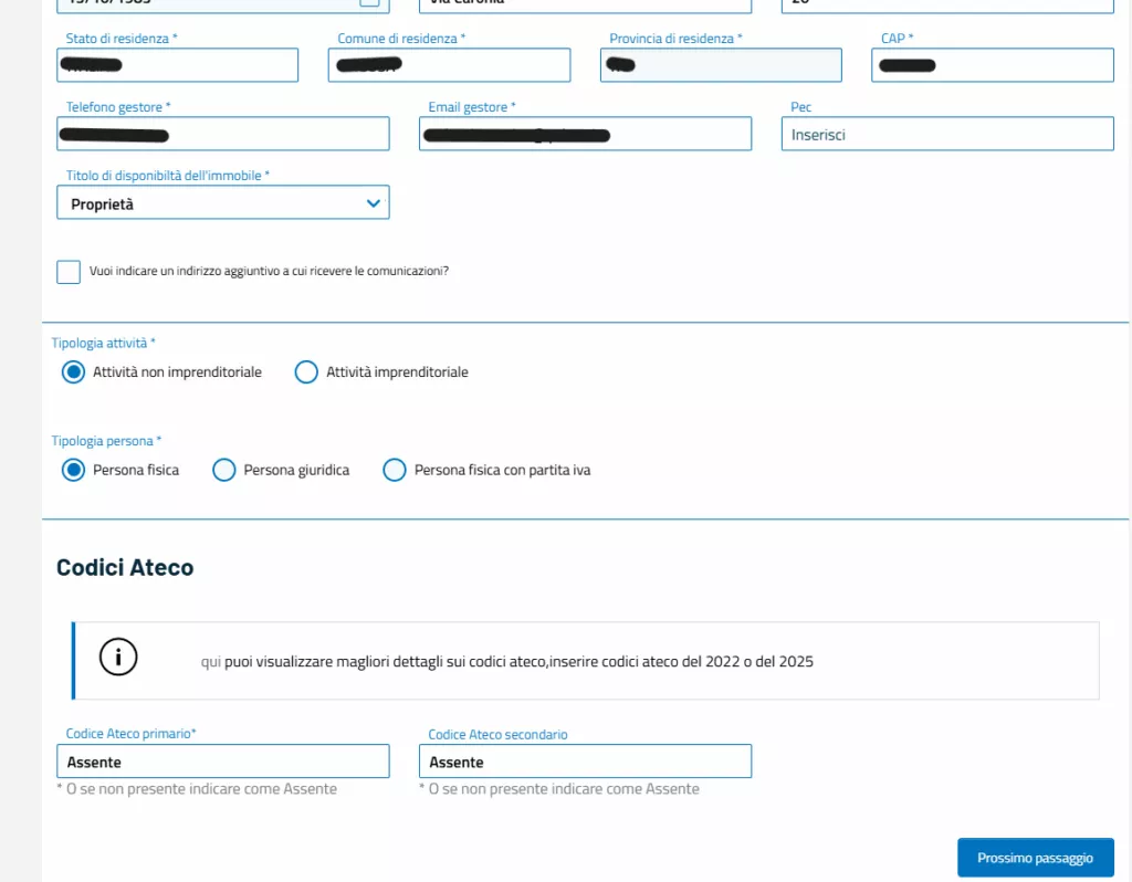 Cliccando su “Prossimo passaggio” si passerà alla scheda in cui inserire tutti i Dati dell’immobile.